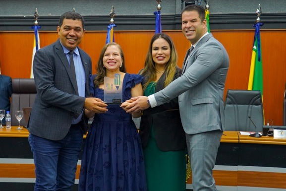 “A construção de conhecimento é o que empodera pessoas e transforma vidas. Quando falamos de conhecimento, falamos de coisas básicas. Fazer um curso de informática básica parece simples, mas é difícil para quem mora no interior ou não tem condição de pagar. E a Escolegis vem oportunizando e transformando vidas. Desejo sucesso a toda equipe! Minha gratidão não é apenas por ser homenageada, mas pelo presidente Sampaio ter esse compromisso de fortalecer as instituições transformadoras que a Assembleia usa como braço social”, declarou Angela.