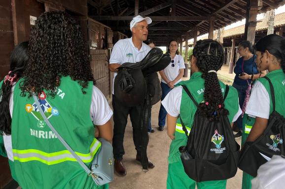Os Sanitaristas Mirins de Boa Vista participaram de uma visita educativa à Cavalaria da PMRR (Polícia Militar de Roraima), no Parque de Exposições Dandãezinho, na zona Rural de Boa Vista. A atividade teve como objetivo aproximar os alunos do universo dos equinos, proporcionando aprendizado sobre manejo, temperamento, pelagens, principais doenças, baias e formas adequadas de interação com os animais.