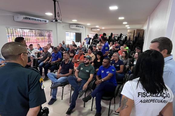Foco do treinamento está em preparar os fiscais para abordagens mais eficientes e seguras, considerando as diversas situações enfrentadas diariamente no controle do trânsito agropecuário.