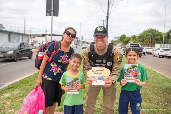 Na saída dos alunos, agentes de trânsito orientaram pais e cuidadores sobre a importância de práticas seguras ao transportar as crianças e ao circular no entorno da escola. O chefe da DPET, Ney Brito, destacou os principais pontos abordados na ação.