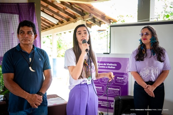 A técnica de referência da Sala Lilás, Nilvana Marques, que também é assistente social, apresentou à população indígena os serviços oferecidos no espaço e também fez atendimentos individuais no local. “Queremos que toda mulher saiba que existe uma rede pronta para acolhê-la. E isso inclui ir até onde elas estão, ouvir suas histórias e garantir o acesso à informação e aos serviços, para que possam romper o ciclo de violência”, afirmou Nilvana.
