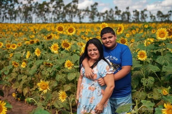 Outra família que veio aproveitar a beleza radiante dos girassóis, foi Elisa Chirana, 40 anos, e o filho Pedro Henrique, 12. Por morar longe da capital, ela viu no campo de girassol, além da beleza, uma oportunidade de proporcionar uma experiência acolhedora e nova para o filho. Ela, então, se preparou para visitar a AgroBV este ano.