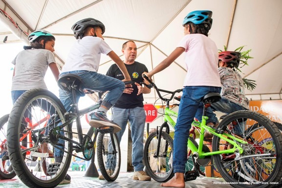 “Nenhuma criança entra no percurso sem primeiro passar por uma nossa salinha de aula, onde lá a gente conversa com elas, ensina a importância de usar o capacete, a importância de usar sempre a ciclovia que nós temos também”, comentou.