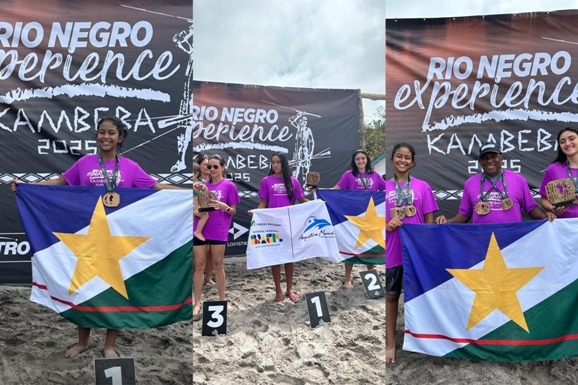 A equipe de Águas Abertas do Sinpol-RR, patrocinada pelo Ecopark, Cultura Inglesa e Projeto Compete Roraima da Setrabes/GOV RR, obteve na manhã deste domingo, 16, excelentes resultados na 1ª Etapa do Rio Negro Challenge de Águas Abertas 2025, na Aldeia Kambeba – AM.