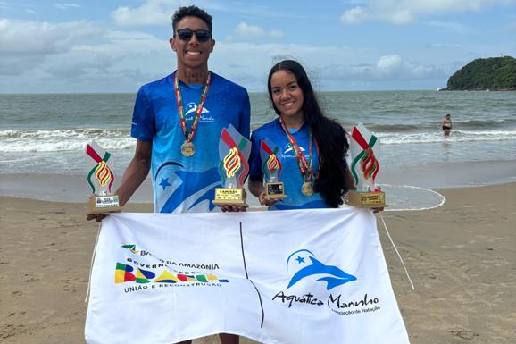 Águas Abertas: Kathleen e Pedro da Aquática Marinho trazem ouro para Roraima