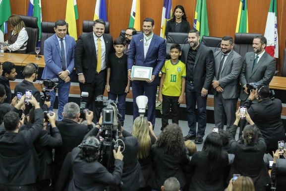 Em solenidade marcada por emoção e reconhecimento nesta terça-feira, 8, o presidente da CBF (Confederação Brasileira de Futebol), Samir Xaud, recebeu três das mais altas honrarias concedidas pela Assembleia Legislativa de Roraima (ALE-RR), durante sessão solene no Plenário Noêmia Bastos Amazonas.