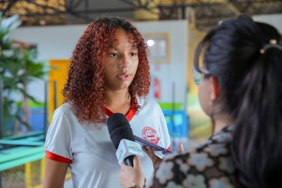 A aluna Laura Reis da Silva, de 16 anos, é líder de sala do 2º ano do ensino médio. A adolescente participou da capacitação e relatou como o conteúdo impactou sua visão sobre o tema, ainda existente na região.