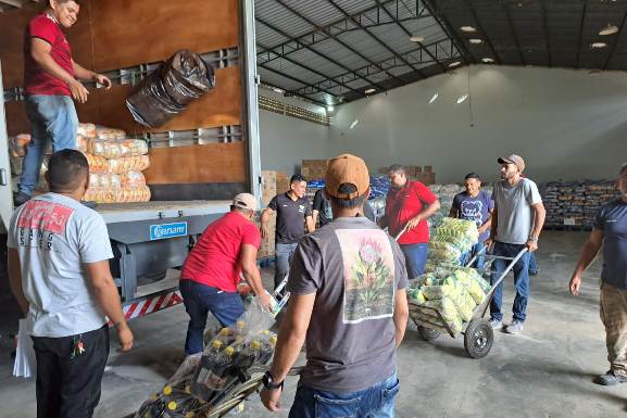 Os caminhões foram carregados com produtos como arroz, feijão, farinha, flocos de milho, macarrão, óleo, extrato de tomate, açúcar, achocolatado, leite em pó, milho branco, alho, sal, vinagre, mel, além de proteínas como frango e carne. Além desses produtos, a Seed também está distribuindo botijas de gás para as escolas.