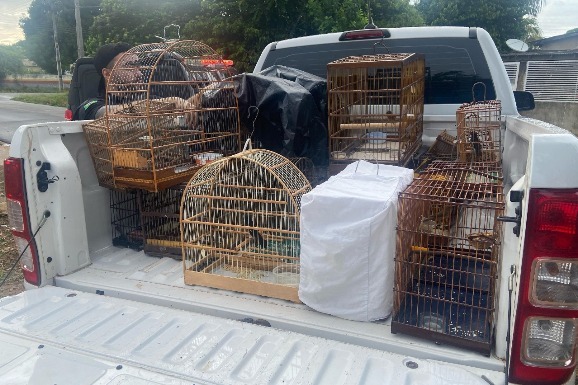 Durante a ação, os policiais apreenderam drogas, armas de fogo, dinheiro em espécie, eletrônicos, cadernos de anotações, além de 13 pássaros silvestres e 23 gaiolas — configurando crime ambiental.
