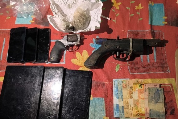 Quatro mandados de busca e apreensão foram cumpridos, resultando na apreensão de drogas, armas, dinheiro e animais silvestres.