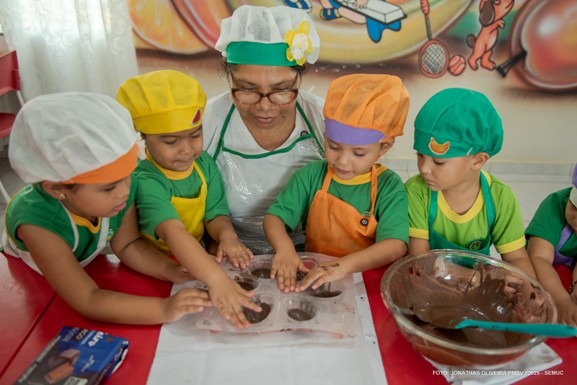 A merendeira Neide Souza, que acompanhou as turminhas durante toda a produção, reforçou que, mesmo sendo chocolate, a proposta ainda carrega os princípios da alimentação saudável que norteiam a merenda escolar do município.