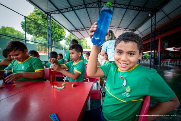 Fernando Cauê é autista e participou da atividade. Ele destacou o que mais gostou de fazer. “A parte que mais achei legal foi a de colocar as bolinhas na garrafa. Eu gosto muito de vir para a escola. Adoro a merenda e brincar com os meus amigos”, falou.