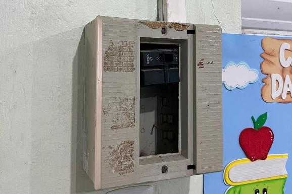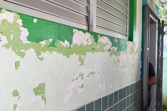 Foram constatados problemas na parte elétrica, além de portas em estado precário, quase se desprendendo; lâmpadas queimadas, goteiras; odor de mofo, centrais de ar inoperantes ou muito sujas. Prateleiras soltas e azulejos quebrados deixam todos em risco, além de que o bebedouro estava sujo.