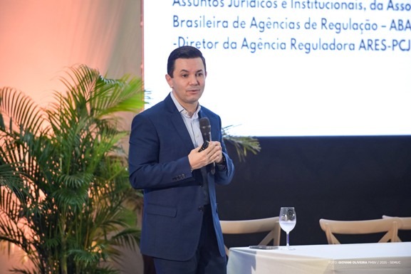 O advogado Carlos Roberto Oliveira ministrou palestra sobre os fundamentos e conceitos da regulação. Doutor em Direito pela USP, com pós-doutorado em Direito Administrativo pela UNESP, ele é secretário-executivo da Câmara Técnica Jurídica e Institucional da Associação Brasileira de Agências Reguladoras (ABAR) e consultor responsável pelo desenvolvimento normativo e jurídico da ARM.