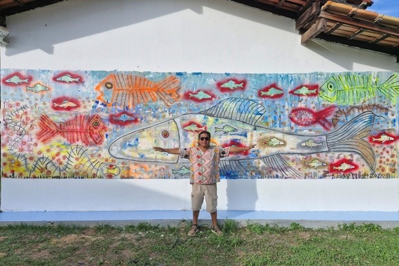 Natural do município roraimense de Uiramutã, o artista indígena do povo patamona Isaias Miliano trabalha há mais de três décadas com arte plástica contemporânea. Na itinerância da Bienal das Amazônias, ele vai apresentar a obra “Mutação: do ventre das águas ao peixe de metal”, um alerta para a contaminação dos rios amazônicos por mercúrio, metal pesado utilizado no garimpo ilegal que ameaça os ecossistemas e o modo de vida tradicional.