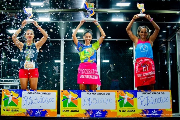 Márcia Magalhães ficou em 1º lugar na categoria feminina, de 18 a 39 anos. Foi a primeira vez que a atleta participou de um desafio como esse. “Cansa, não vou mentir. Mas eu pedi força a Deus e consegui concluir o percurso e alcançar o meu objetivo, que era ficar no pódio. Agora vou me recuperar para correr bem a 9 de Julho (corrida principal). Tenho fé que vai dar certo”, afirmou.