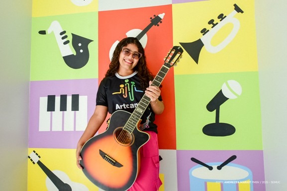 Kewelyn Ferreira, de 18 anos, participa do ArtCanto há quase cinco anos. Desde pequena, a jovem se interessou pela música e começou a trajetória artística no Instituto Boa Vista de Música (IBVM) e em 2021 ingressou no ArtCanto. Com os aprendizados em ambas as iniciativas, Kewelyn prestou o vestibular de música na Universidade Federal de Roraima (UFRR), sendo aprovada.