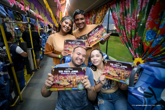 “O Ônibus do Forró é uma inovação no Boa Vista Junina 2025, quando o evento completa 25 anos. Essa inciativa veio para resgatar e alimentar essa história do forró e das festas de arraial. É um passeio de pertencimento, cultura e identidade. A cada parada, o público conhece um pouco mais sobre as origens do nosso arraial, guiados por profissionais que realmente fazem parte do receptivo do destino Boa Vista”, afirmou.