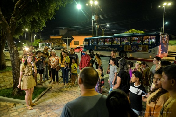 O embarque aconteceu no Parque do Rio Branco, ponto de partida do trajeto que passou pelo Centro Histórico, Igreja São Sebastião, Praça do Centro Cívico e Praça Fábio Marques Paracat. O público foi guiado por personagens teatrais e músicos ao vivo, que contaram – entre um “forrozinho” e outro – a história do Boa Vista Junina, da cidade e de seus prédios históricos, tudo com direito a brindes, paçoca e muita cultura popular.