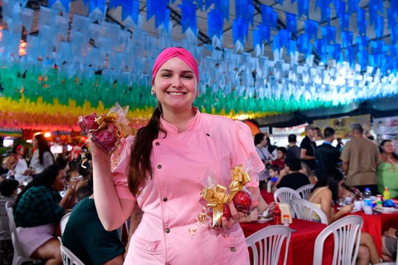 Quem também comemorou o sucesso do evento foi a empreendedora Priscila Ramos. No último dia do arraial, ela contou com a ajuda da amiga Aline Lima, para atender a grande demanda pelas camisetas temáticas, que fizeram sucesso entre o público.