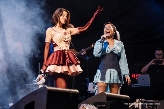Conhecidas como as “Gêmeas da Sofrência”, a dupla Maiara e Maraisa encantou o público do Maior Arraial da Amazônia na noite deste domingo, 8. Ao som de Esqueça-me Se For Capaz e Bebaça – parcerias com a artista Marília Mendonça, as irmãs deram início ao show que embalou cerca de 150 mil pessoas no encerramento do Boa Vista Junina 2025.
