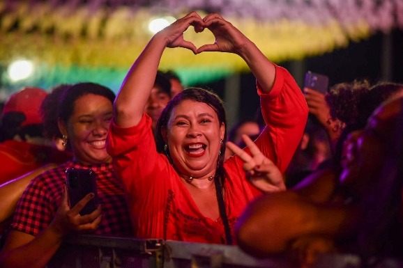 A servidora pública Miriam Soares chegou cedo no Boa Vista Junina 2025 para garantir um lugar próximo ao palco. “Foi difícil conter a emoção quando o show começou. Pra mim está tudo muito top! Estou muito feliz, é o melhor show da minha vida”, destacou.