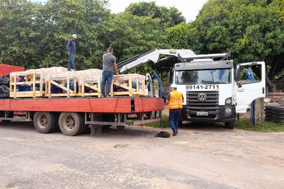 Ao todo, sete conjuntos de bombas foram entregues na sede da companhia nesta sexta-feira, 14. Os conjuntos de motobombas centrífugas, variam de 10cv a 150cv e serão utilizadas na reposição de bombas antigas à medida que surja a necessidade pelos equipamentos.