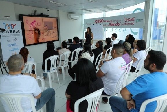 A capacitação ocorre durante todo o dia e segue nesta sexta-feira (6), com uma abordagem voltada especificamente para os servidores que compõem a equipe de atendimento multidisciplinar do Centro Humanitário de Apoio à Mulher (Chame).
