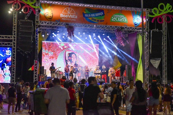 A primeira noite do Carnaval de Boa Vista 2025 ocorreu neste sábado, 1º, em três circuitos itinerantes: Praça Cabos e Soldados (Caranã), Praça Clotilde Thereza Duarte de Oliveira (Nova Cidade) e Praça Linear Chico do Carneiro (Bairro dos Estados). O tema desse ano é “Folia que abraça, cidade que cuida” e a proposta da prefeitura é celebrar a união e o compromisso com o bem-estar da população durante as quatro noites de festa.