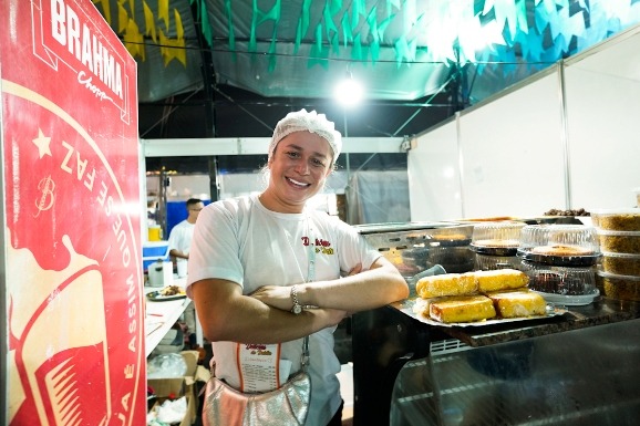 Uma das ambulantes beneficiadas com a internet grátis foi Dahlin Leal. Ela está com uma barraca no Boa Vista Junina vendendo alimentação e bebidas típicas em geral.