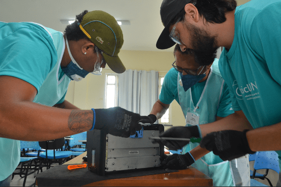 Além de aulas teóricas, a oficina prática transformou lixo eletrônico em conhecimento.