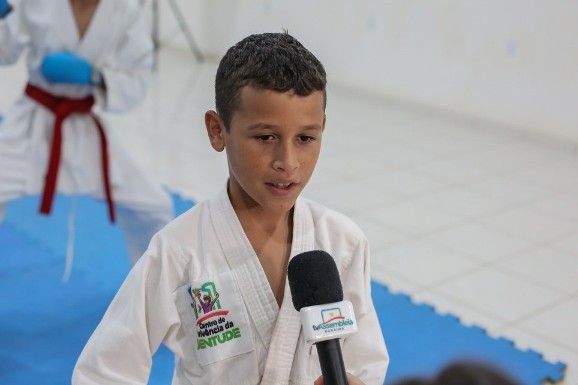 Abdiel Valverde tem dez anos e treina na unidade Pedra Pintada desde os sete para poder se concentrar no dia a dia. O pequeno carateca contou que o esporte o ajuda a controlar a ansiedade.