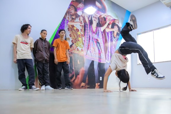 Vinculado à cultura hip-hop, o breakdance envolve movimentos como giros, paradas de mão e cambalhotas. A modalidade exige preparo físico e dedicação. Segundo o professor, além dos benefícios físicos, a dança também contribui com o desenvolvimento emocional dos jovens.