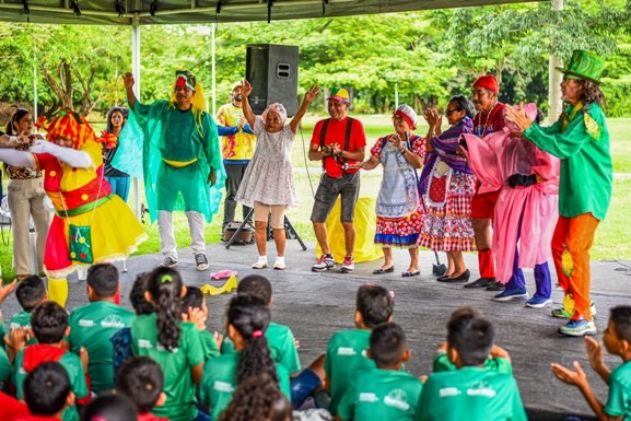 Cerca de 300 crianças participam das atividades lúdicas, que incluem música, teatro, brincadeiras e muito mais.