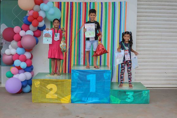 Entre os vencedores esteve o pequeno Lorenzo Nunes, de 8 anos. Ao usar cores vibrantes para pintar as formas da Pedra Pintada, formação rochosa localizada no município de Pacaraima, ele garantiu o primeiro lugar no pódio.