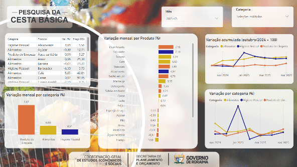 “O Painel da Cesta Básica reúne os principais resultados da pesquisa. É possível, por exemplo, acompanhar a variação acumulada no mês. Qualquer pessoa, seja um usuário comum, acadêmico ou pesquisador, pode acessar o site da Seplan, entrar na aba Estudos e selecionar Cesta Básica. Lá estão disponíveis o painel interativo e a base de dados completa, que pode ser baixada com apenas um clique”, explicou.