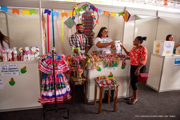 A feira de artesanato organizada pela Agência Municipal de Empreendedorismo (AME BV) chamou atenção de quem passava. Entre os expositores estava a beneficiária Ana Maia, de 24 anos, que herdou da mãe o dom do artesanato. “Trabalhamos com temas sazonais, e o São João é nossa data mais especial. Estar aqui hoje é mostrar minha arte com orgulho. Eventos como esse são vitrine para nós”, destacou a jovem empreendedora.