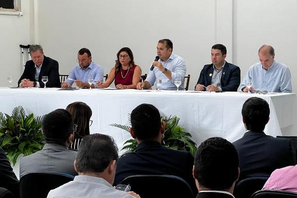 O encontro reúne prefeitos e procuradores municipais para debater a implementação da Lei Complementar nº 300/2021 que criou a Microrregião de Água e Esgoto no âmbito do Estado de Roraima e definiu suas estruturas de governança.