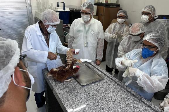 Participantes receberam instruções sobre coleta de material biológico como swab, traqueia e cloaca, amostras de sangue e técnicas de necropsia.