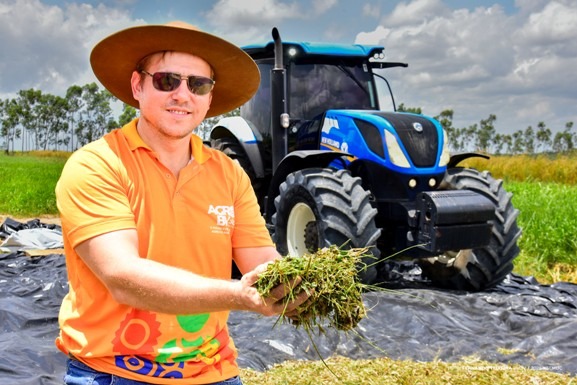 “A planta inteira é colhida. Esse material é triturado e recebe um inoculante, que são microrganismos benéficos usados para promover a fermentação. Todo o material será 100% ensilado. Já tivemos essa experiência anteriormente com ótimos resultados. São destinados à alimentação de vacas-leiteiras de alta produção, com feedback positivo. Os animais aceitaram bem o alimento e houve aumento de produção e de qualidade do leite. É, sem dúvida, um produto de excelência”, disse.