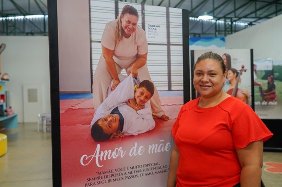 A emoção tomou conta das mães homenageadas durante a abertura da mostra. Entre elas, a contadora Gildeane Sousa. Ela é mãe de Arthur, de 8 anos, e Sérgio, de 10. Ambos praticam três modalidades no polo Senador Hélio Campos: futebol, judô e jiu-jitsu.