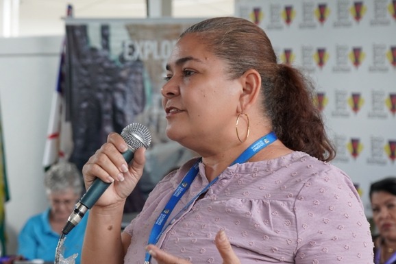 Glória Alecar, de 16 anos, aluna da 2ª série do ensino médio e líder de turma, participou da capacitação e se surpreendeu com os dados sobre o tráfico de pessoas em Roraima.