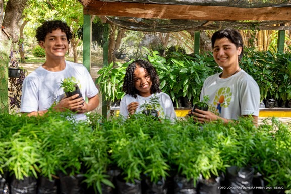 Nanda Vitória, de 17 anos, está há um ano integrando o projeto Dedo Verde e ama estar com os seus amigos, além de aprender sobre cultivo de plantas e estudar sobre o meio ambiente. Com o início das atividades de 2025, ela espera fazer muito mais.