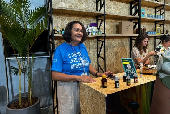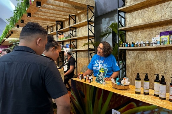 Celeste Costa, proprietária da empresa Cel Phytos, é uma das expositoras no Inova Amazônia Summit 2025, evento promovido pelo Sebrae Amapá no município de Macapá.