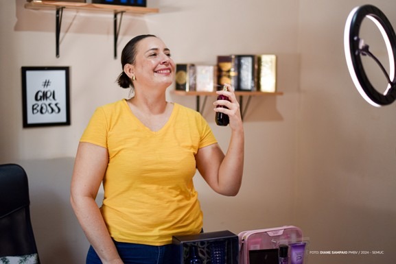 Com um sorriso contagiante e uma habilidade inegável para vendas, Joquebede Oliveira viu nos cosméticos uma oportunidade de negócio. Mas o que começou como alternativa para complementar a renda se tornou o coração de sua jornada como empreendedora. E isso, claro, com apoio da Agência Municipal de Empreendedorismo e Fomento (AME BV).