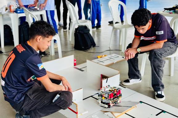 Coordenada pela Universidade Federal de Roraima (UFRR) na fase estadual, a disputa foi realizada no último sábado, 9, na quadra de esportes da Escola do Sesi, com participação das equipes do Sesi-RR, Instituto Federal de Roraima (IFRR) e Centro de Ciência, Tecnologia e Inovação (CCTI). As equipes competiram em dois níveis de desafio técnico, em uma disputa marcada por talento, inovação e emoção.