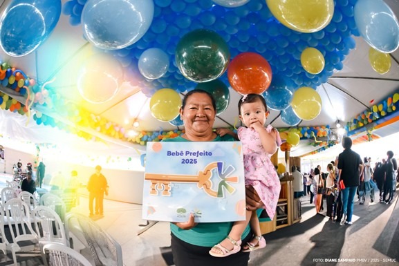 Cheia de fofura, a pequena Thauany Diniz, de 11 meses, foi eleita como a “Bebê Prefeito” em 2025. Para receber a simbólica chave da cidade, a criança é escolhida a partir de critérios alinhados ao Selo UNICEF, como pré-natal (preferencialmente em uma UBS) e mínimo de 7 consultas, além de presença mínima de 50% nos encontros promovidos pelo FQA.