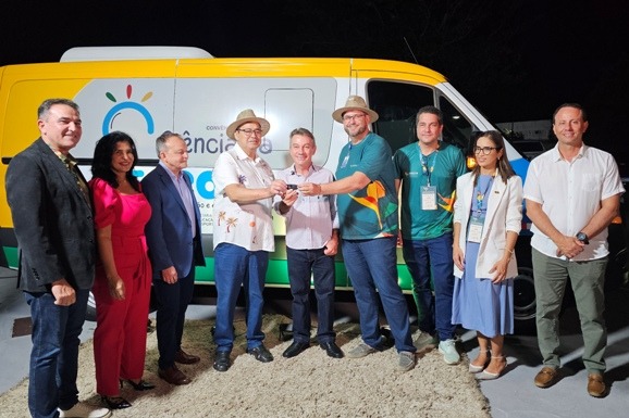 Outro destaque foi a entrega da van da Chamada Pública Ciência na Escola. A iniciativa amplia a mobilidade da ciência, permitindo que estudantes e professores da rede pública tenham acesso a experiências de pesquisa e inovação diretamente em suas comunidades.