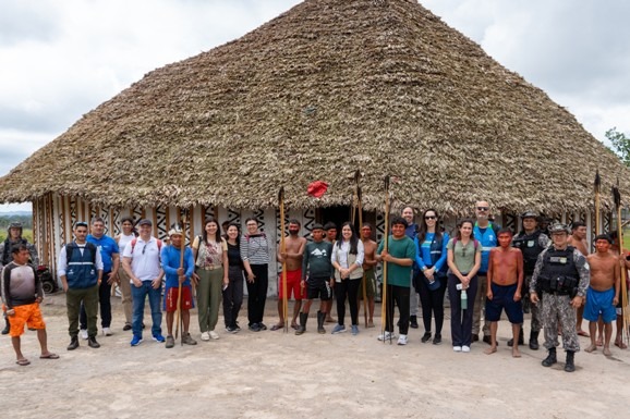 Comitiva reuniu-se com o líder Yanomami, Júnior Hekurari, e demais indígenas da região e conheceu as instalações do novo Centro de Referência em Saúde Indígena Yanomami e Yekuana.