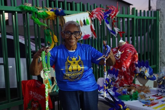Além da dança e das apresentações, o evento foi uma oportunidade para a artesã Joana Pimentel expor e vender seus adereços típicos do folclore. Natural da cidade de Parintins, Joana vive da arte e do amor pelo boi Caprichoso, e não perdeu a oportunidade de trazer um pouco do que é produzido na ilha para Boa Vista. “É um momento especial, para mim e para todos que estão aqui. As pessoas podem aprender a dançar, e para mim, é uma forma de divulgar e vender os meus adereços. Quando vejo todos aqui se movimentando ao som do boi, me sinto em Parintins”, disse Joana.